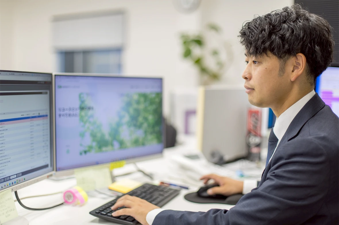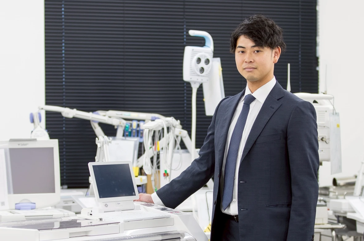 現在は第三営業課に所属し、主にメールを通じてお客様と医療機器の販売・下取りに関するやりとりをしています。問い合わせ対応から始まり、成約に至ればお客様のクリニックや診療所へ直接訪問。機器によってはメーカー点検・納品手配など、できる限り、お客様の負担を軽減することを心がけスムーズな取引を行っています。