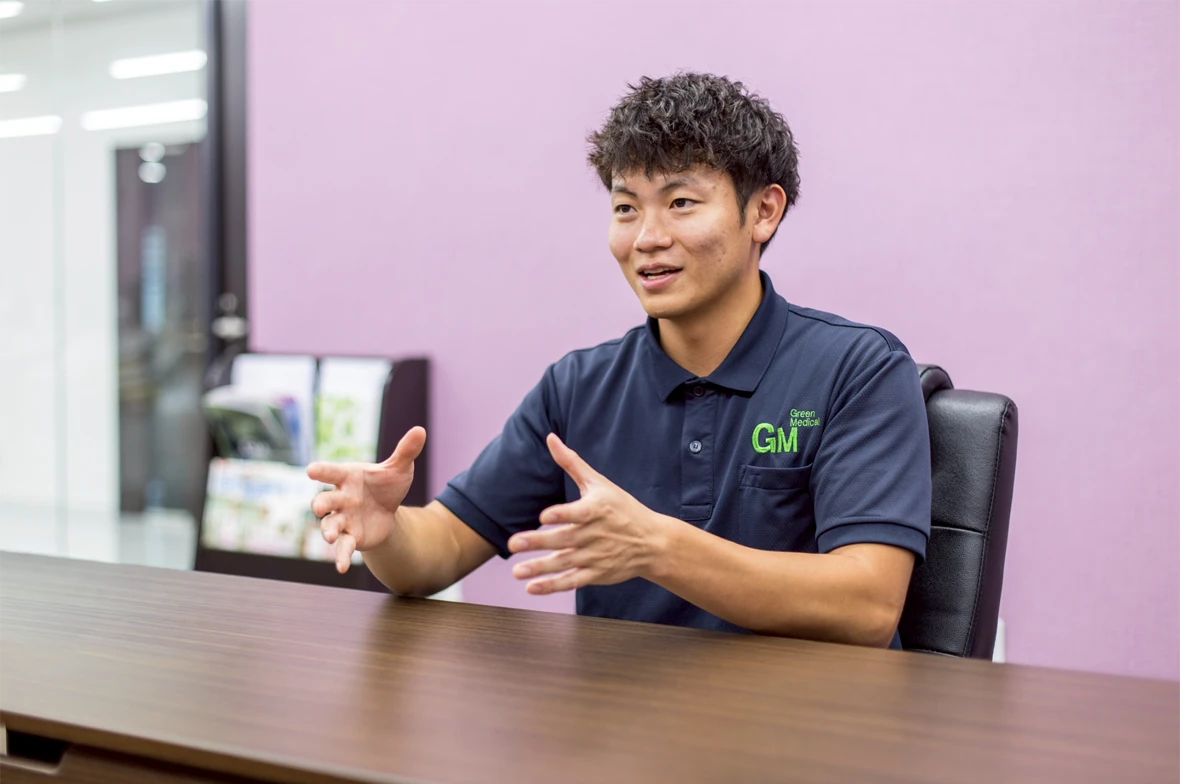 そのような状況もあり、卒業後、自分の進路について考え、司法書士に固執することはないのではないか。いままでとは違う、新たなジャンルに挑戦してみようという意欲が勝り、友人からグリーンメディカルを紹介してもらいました。