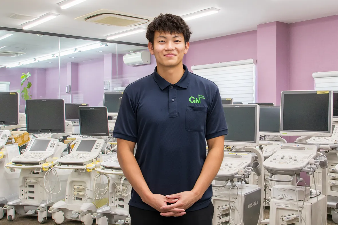 入社当初は機器のことがわからず、「これは何をするものなのだろう?」という感じでしたが、先輩から教えていただくことで「なるほど、こういう医療現場で活躍しているんだな」とわかり、経験するごとに興味と面白みが湧いてきました。